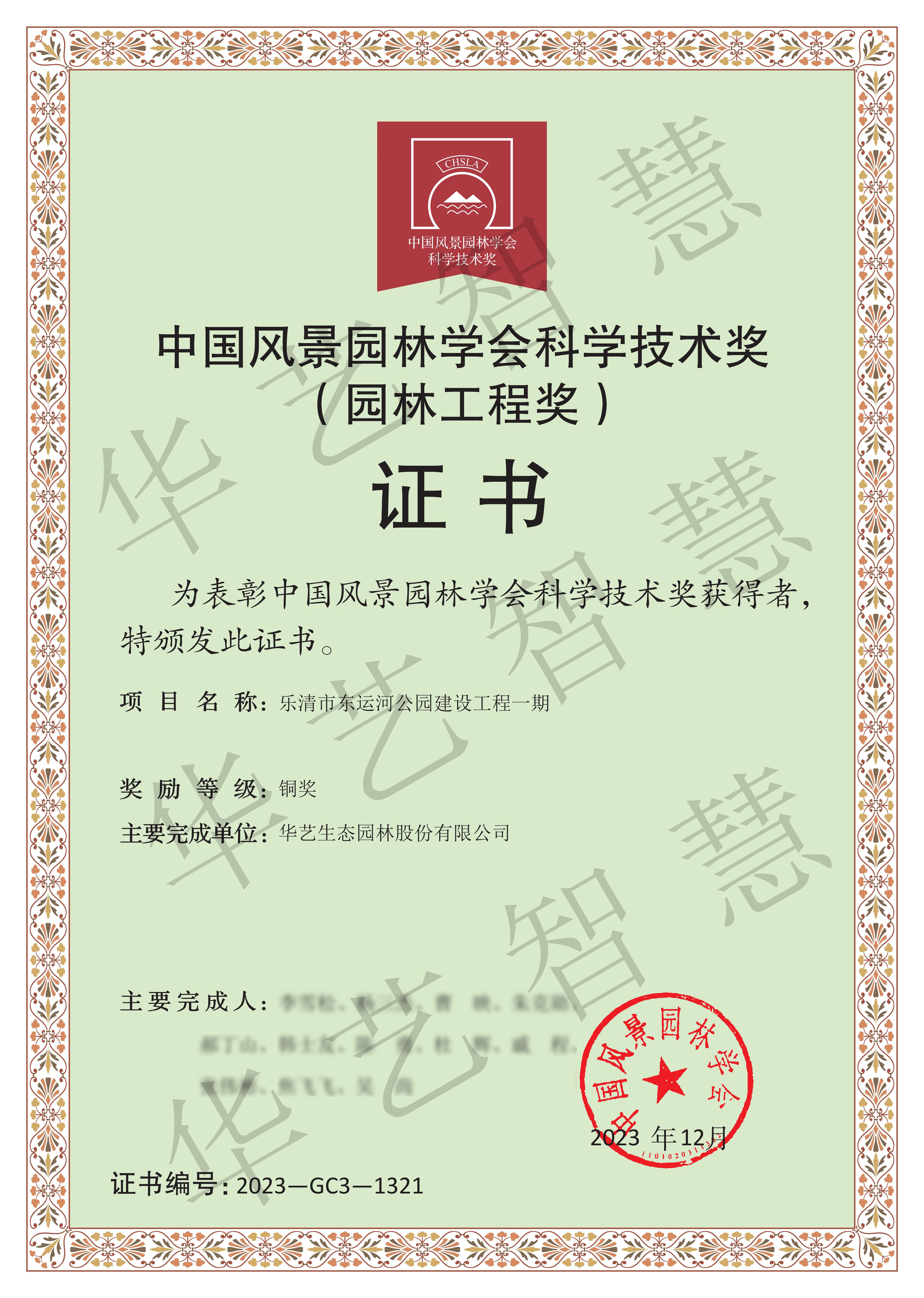 在中國(guó)風(fēng)景園林學(xué)會(huì)科學(xué)技術(shù)獎(jiǎng)?lì)C獎(jiǎng)典禮上,華藝智慧憑借富有藝術(shù)化原創(chuàng)優(yōu)秀設(shè)計(jì)、低碳環(huán)保綠色化、集約管養(yǎng)智慧化的詩(shī)情畫(huà)意產(chǎn)品,榮獲(園林工程獎(jiǎng))銅獎(jiǎng)1項(xiàng)、(規(guī)劃設(shè)計(jì)獎(jiǎng))三等獎(jiǎng)1項(xiàng),其中銅獎(jiǎng)為樂(lè)清市東運(yùn)河公園建設(shè)工程一期,三等獎(jiǎng)為蜀山區(qū)第三批口袋游園建設(shè)項(xiàng)目EPC[設(shè)計(jì)]。此次獲獎(jiǎng),是樂(lè)清市東運(yùn)河公園建設(shè)工程一期繼榮獲浙江省風(fēng)景園林學(xué)會(huì)優(yōu)秀園林工程獎(jiǎng)(施工)金獎(jiǎng)、溫州市“優(yōu)秀園林工程”金獎(jiǎng)和蜀山區(qū)第三批口袋游園建設(shè)項(xiàng)目EPC[設(shè)計(jì)]繼榮獲安徽省市政工程優(yōu)質(zhì)獎(jiǎng)、安徽省風(fēng)景園林規(guī)劃設(shè)計(jì)“園林杯”獎(jiǎng)二等獎(jiǎng)、合肥市“廣玉蘭杯”獎(jiǎng)、合肥市市政工程“廬州杯”獎(jiǎng)、合肥市優(yōu)良園林工程獎(jiǎng)之后的又一重大榮譽(yù)。