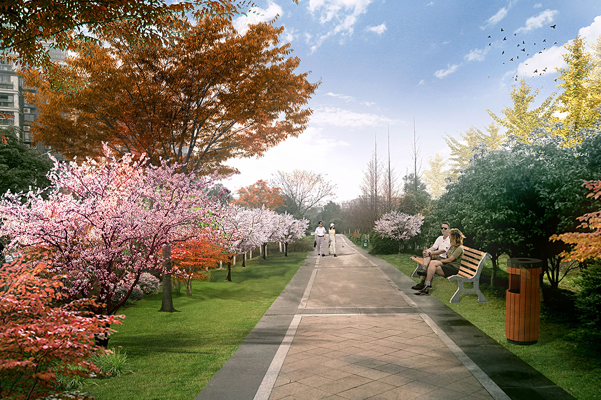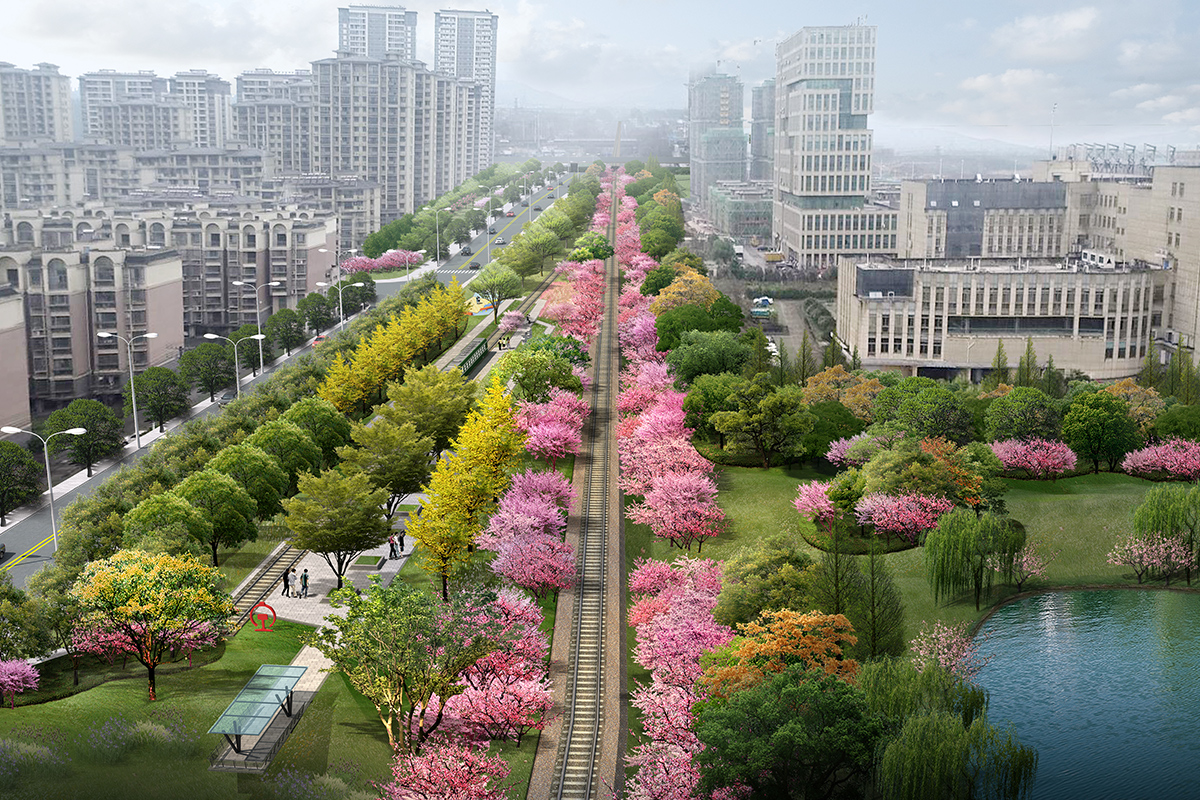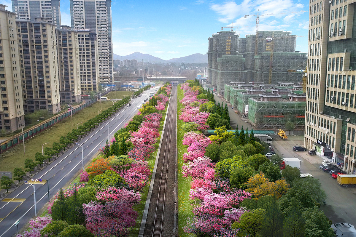 規(guī)劃設(shè)計后鐵路沿線成為城區(qū)內(nèi)高品質(zhì)的綠色通道。