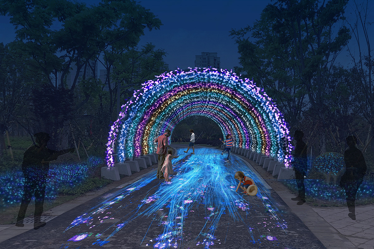 設計以生態(tài)化、藝術化、智慧化、綠色化,追求人與自然綠色健康和諧,智慧鏈接人與自然和諧共生,以“智慧+”的形式,圍繞運動健康、服務設施、智慧亮化、創(chuàng)新互動、運營管理等功能進行展現(xiàn),以場景的智慧創(chuàng)新撬動地區(qū)的活力和生命力,為樂清市民帶來全新的公園生活場景。